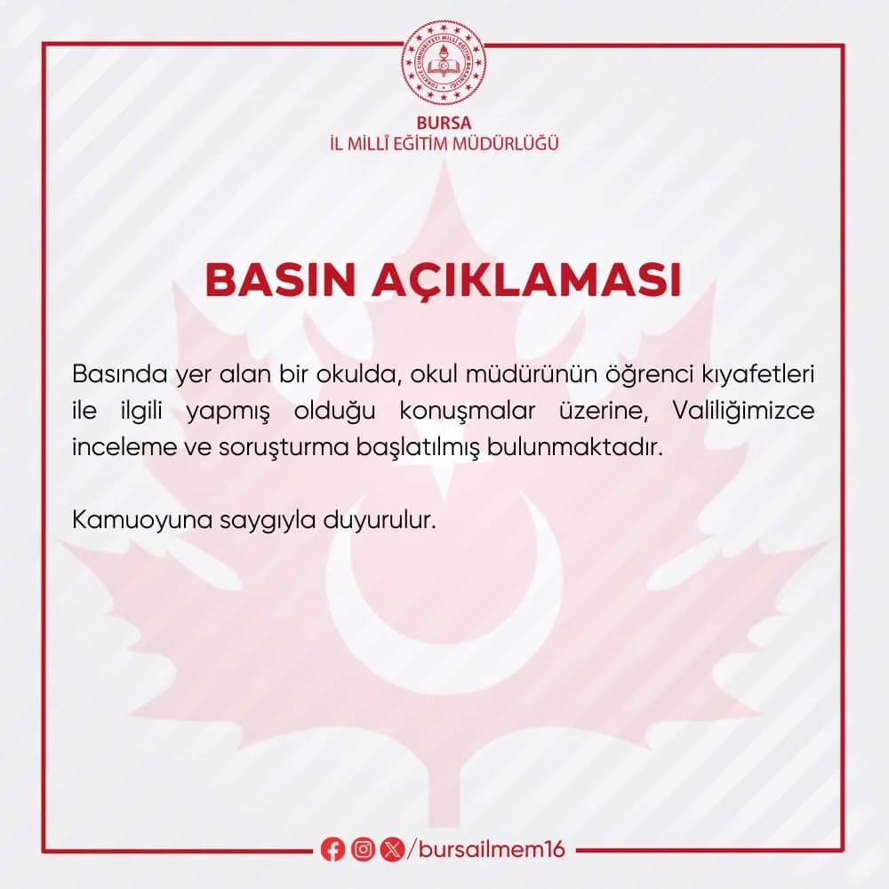 İşte Bursa İl Milli Eğitim Müdürülüğünün Basın Açıklaması: